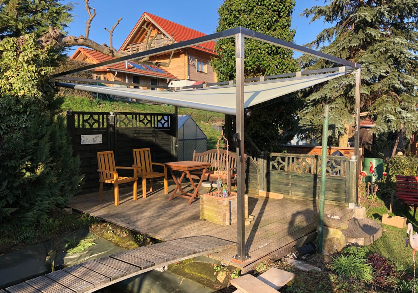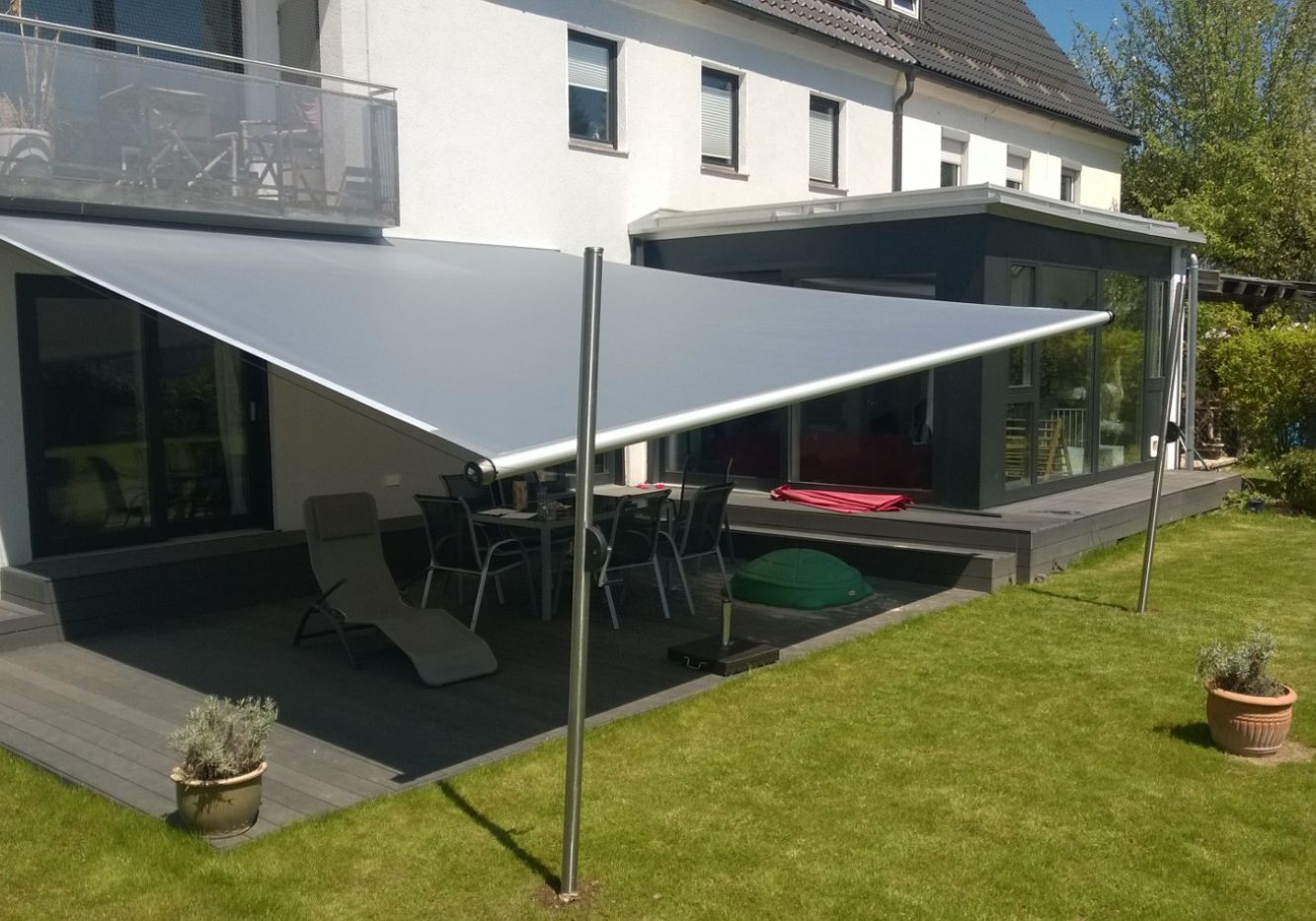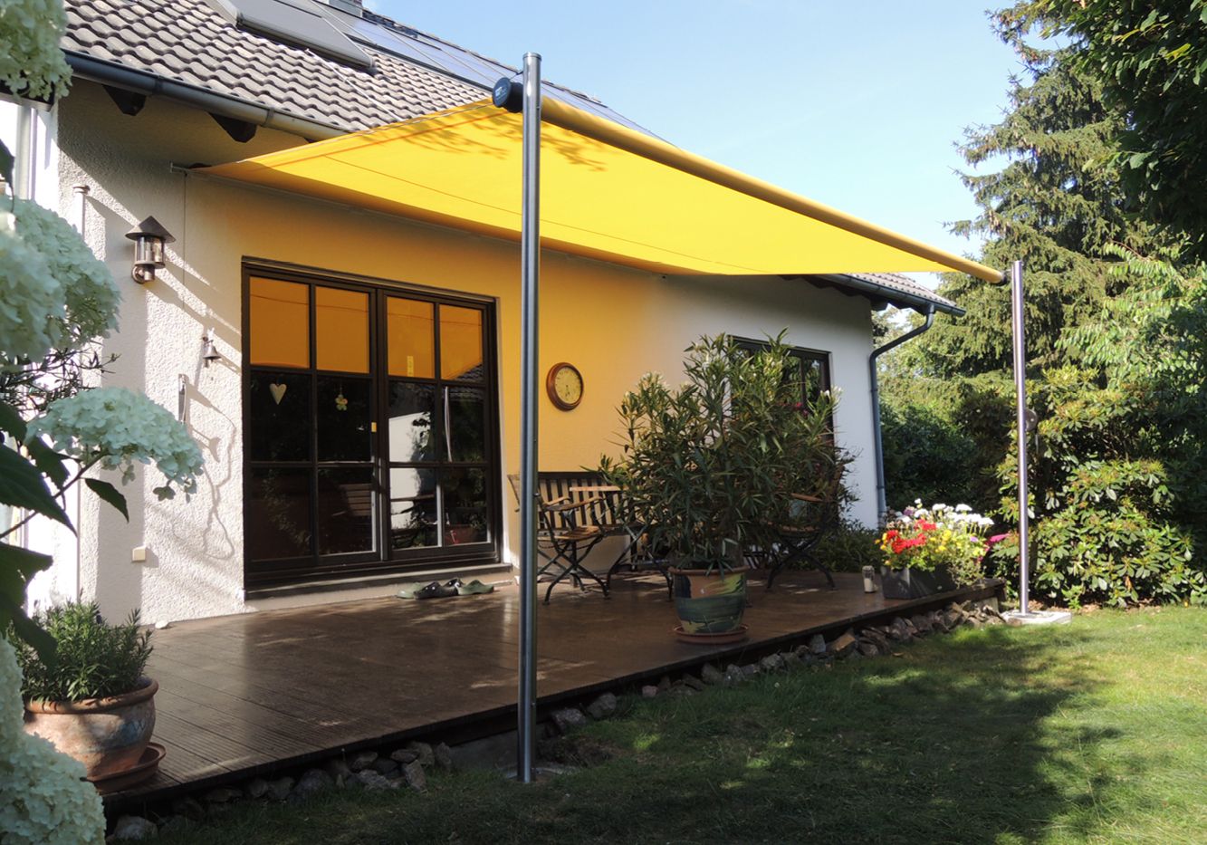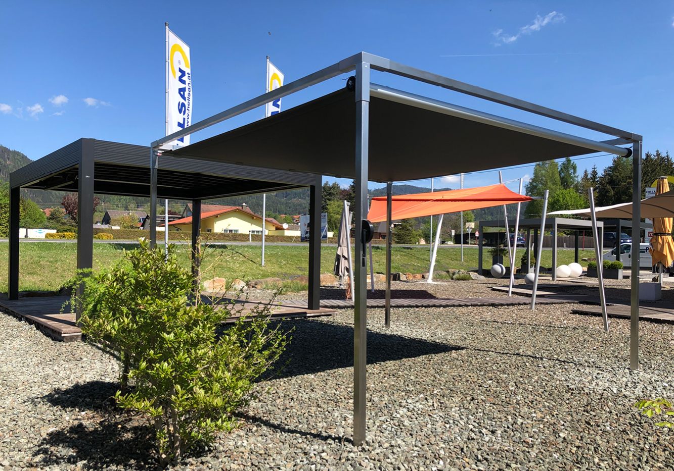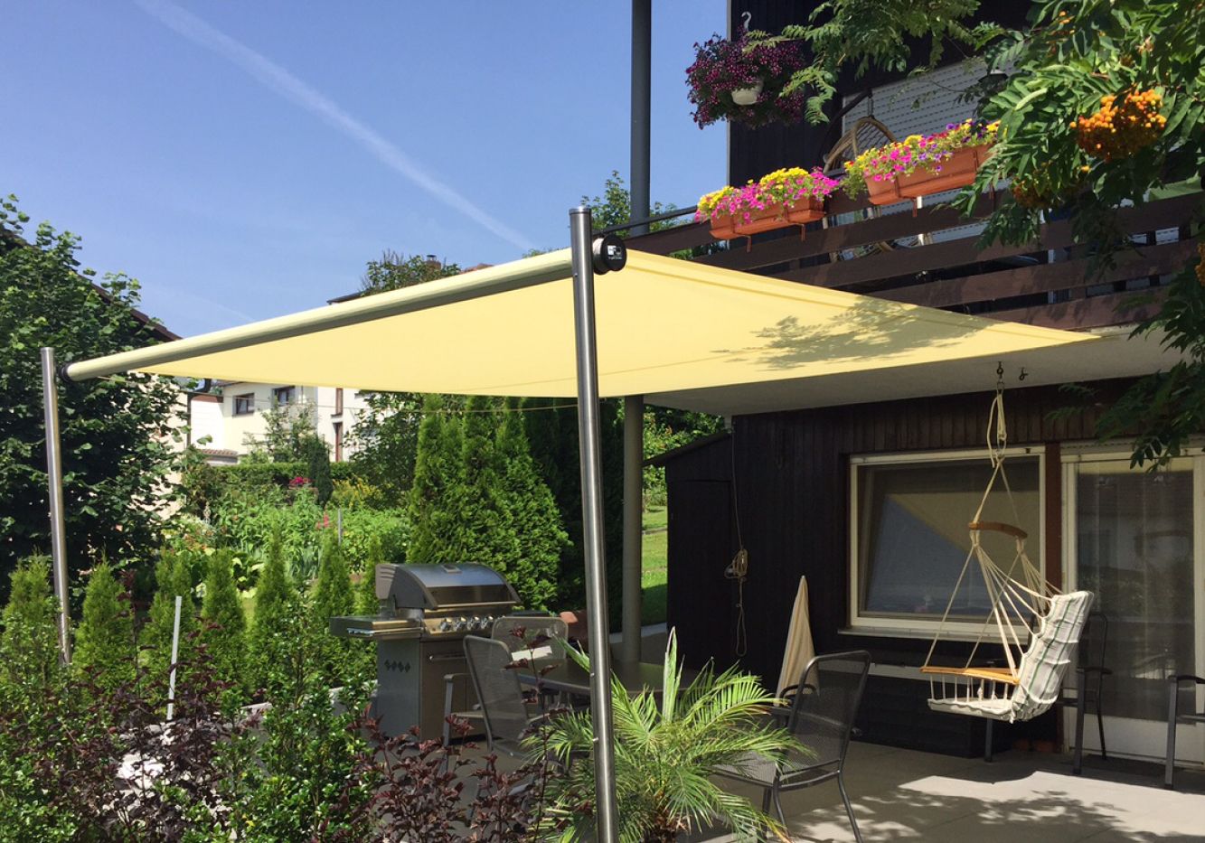 Ausführung als freistehender Sonnen- und Regenschutz
