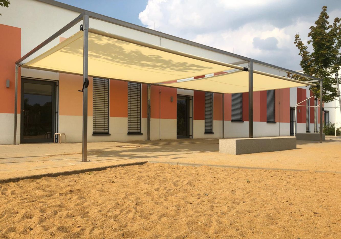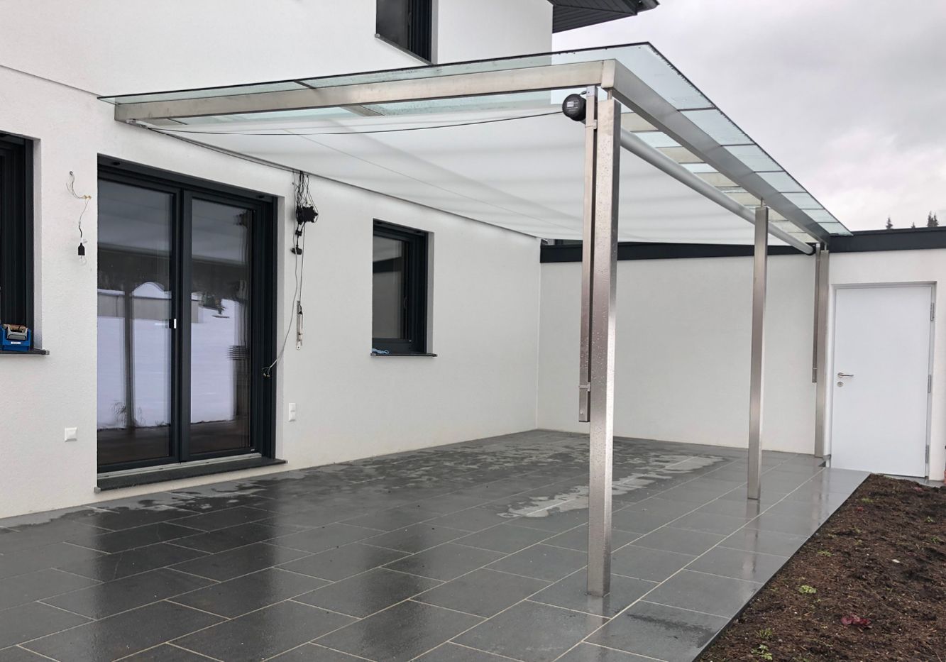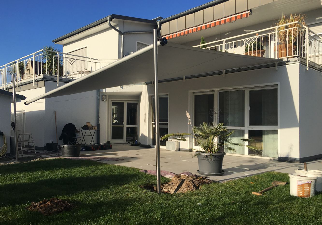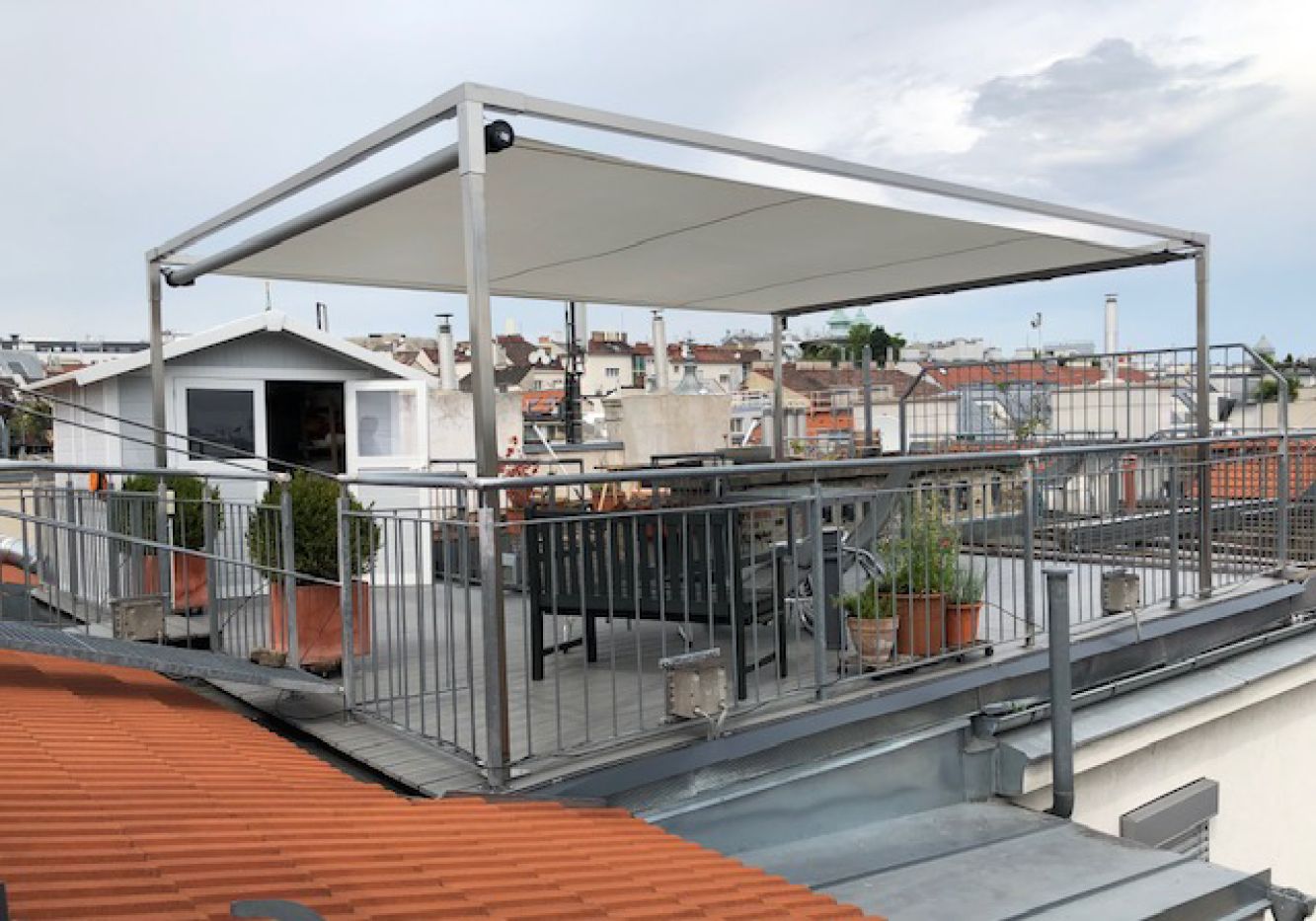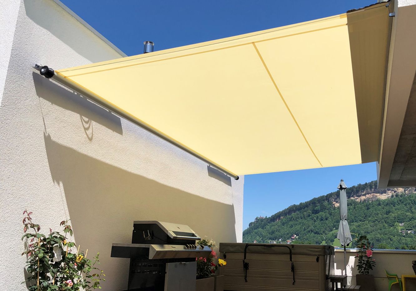 Ausführung als freistehender Sonnen- und Regenschutz